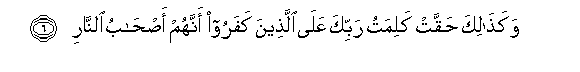 6. Wakathalika haqqat kalimatu rabbika AAala allatheena kafaroo annahum as-habu alnnari