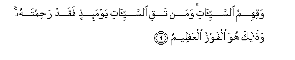 9. Waqihimu alssayyi-ati waman taqi alssayyi-ati yawma-ithin faqad rahimtahu wathalika huwa alfawzu alAAatheemu