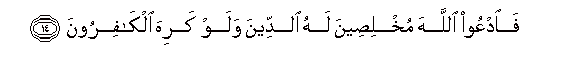 14. Call ye, then, upon Allah with sincere devotion to Him, even though the Unbelievers may detest it.