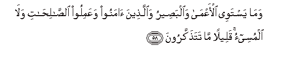 58. Wama yastawee al-aAAma waalbaseeru waallatheena amanoo waAAamiloo alssalihati wala almusee-o qaleelan ma tatathakkaroona
