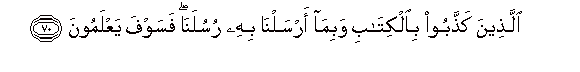 70. Allatheena kaththaboo bialkitabi wabima arsalna bihi rusulana fasawfa yaAAlamoona