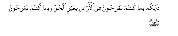 75. Thalikum bima kuntum tafrahoona fee al-ardi bighayri alhaqqi wabima kuntum tamrahoona