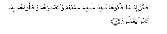 20. Hatta itha ma jaooha shahida AAalayhim samAAuhum waabsaruhum wajulooduhum bima kanoo yaAAmaloona