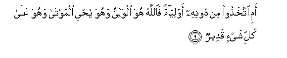 9. Ami ittakhathoo min doonihi awliyaa faAllahu huwa alwaliyyu wahuwa yuhyee almawta wahuwa AAala kulli shay-in qadeerun