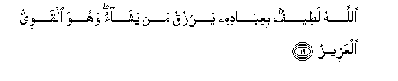 19. Allahu lateefun biAAibadihi yarzuqu man yashao wahuwa alqawiyyu alAAazeezu