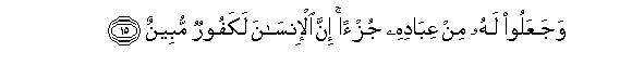 15. WajaAAaloo lahu min AAibadihi juz-an inna al-insana lakafoorun mubeenun