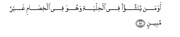 18. Is then one brought up among trinkets, and unable to give a clear account in a dispute (to be associated with Allah.?