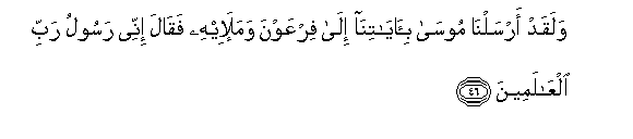 46. Walaqad arsalna moosa bi-ayatina ila firAAawna wamala-ihi faqala innee rasoolu rabbi alAAalameena