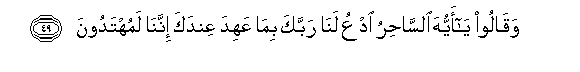 49. Waqaloo ya ayyuha alsahiru odAAu lana rabbaka bima AAahida AAindaka innana lamuhtadoona
