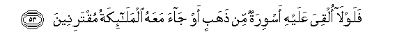 53. Falawla olqiya AAalayhi aswiratun min thahabin aw jaa maAAahu almala-ikatu muqtarineena