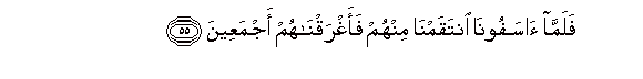55. Falamma asafoona intaqamna minhum faaghraqnahum ajmaAAeena