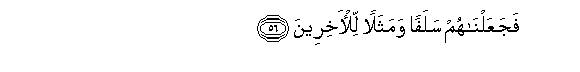 56. FajaAAalnahum salafan wamathalan lil-akhireena