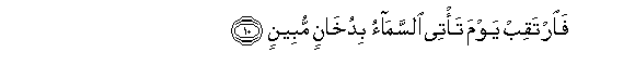 10. Fairtaqib yawma ta/tee alssamao bidukhanin mubeenin