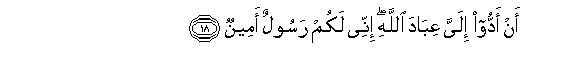 18. An addoo ilayya AAibada Allahi innee lakum rasoolun ameenun