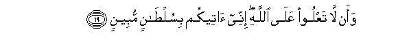 19. Waan la taAAloo AAala Allahi innee ateekum bisultanin mubeenin