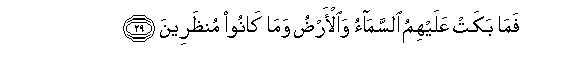 29. Fama bakat AAalayhimu alssamao waal-ardu wama kanoo munthareena