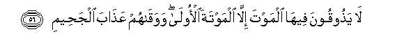 56. La yathooqoona feeha almawta illa almawtata al-oola wawaqahum AAathaba aljaheemi