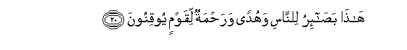 20. Hatha basa-iru lilnnasi wahudan warahmatun liqawmin yooqinoona
