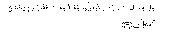 27. Walillahi mulku alssamawati waal-ardi wayawma taqoomu alssaAAatu yawma-ithin yakhsaru almubtiloona