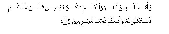 31. Waamma allatheena kafaroo afalam takun ayatee tutla AAalaykum faistakbartum wakuntum qawman mujrimeena