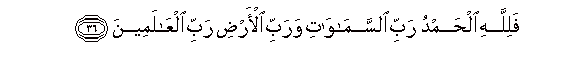 36. Falillahi alhamdu rabbi alssamawati warabbi al-ardi rabbi alAAalameena