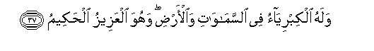 37. Walahu alkibriyao fee alssamawati waal-ardi wahuwa alAAazeezu alhakeemu