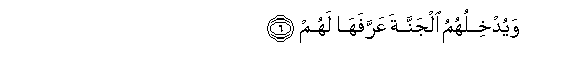 6. Wayudkhiluhumu aljannata AAarrafaha lahum