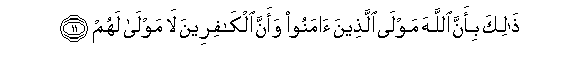11. Thalika bi-anna Allaha mawla allatheena amanoo waanna alkafireena la mawla lahum