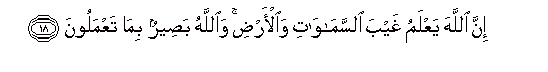 18. Inna Allaha yaAAlamu ghayba alssamawati waal-ardi waAllahu baseerun bima taAAmaloona