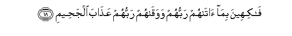 18. Fakiheena bima atahum rabbuhum wawaqahum rabbuhum AAathaba aljaheemi