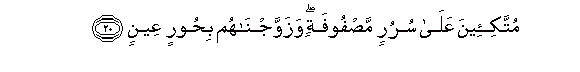 20. Muttaki-eena AAala sururin masfoofatin wazawwajnahum bihoorin AAeenin