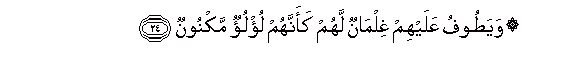 24. Wayatoofu AAalayhim ghilmanun lahum kaannahum lu/luon maknoonun