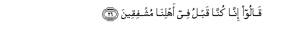 26. Qaloo inna kunna qablu fee ahlina mushfiqeena