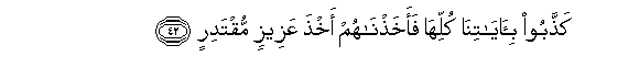 42. Kaththaboo bi-ayatina kulliha faakhathnahum akhtha AAazeezin muqtadirin