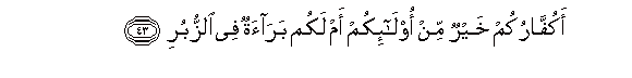 43. Akuffarukum khayrun min ola-ikum am lakum baraatun fee alzzuburi