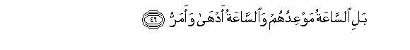 46. Nay, the Hour (of Judgment) is the time promised them (for their full recompense): And that Hour will be most grievous and most bitter.