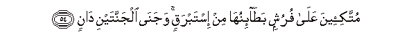 54. Muttaki-eena AAala furushin bata-inuha min istabraqin wajana aljannatayni danin