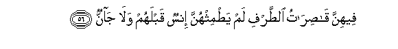 56. Feehinna qasiratu alttarfi lam yatmithhunna insun qablahum wala jannun