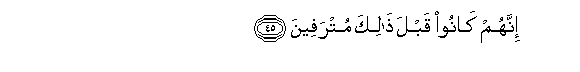 45. Innahum kanoo qabla thalika mutrafeena