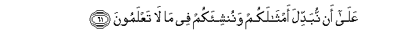 61. AAala an nubaddila amthalakum wanunshi-akum fee ma la taAAlamoona
