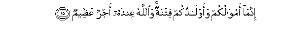 15. Innama amwalukum waawladukum fitnatun waAllahu AAindahu ajrun AAatheemun