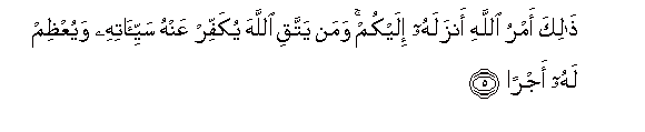 5. Thalika amru Allahi anzalahu ilaykum waman yattaqi Allaha yukaffir AAanhu sayyi-atihi wayuAAthim lahu ajran
