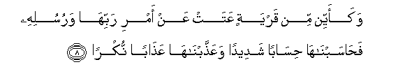 8. Wakaayyin min qaryatin AAatat AAan amri rabbiha warusulihi fahasabnaha hisaban shadeedan waAAaththabnaha AAathaban nukran