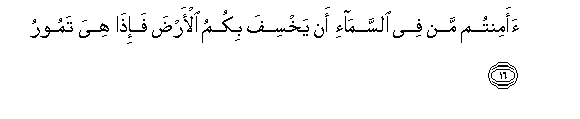 16. Aamintum man fee alssama-i an yakhsifa bikumu al-arda fa-itha hiya tamooru