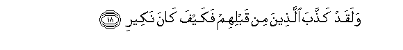 18. Walaqad kaththaba allatheena min qablihim fakayfa kana nakeeri