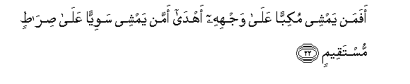 22. Afaman yamshee mukibban AAala wajhihi ahda amman yamshee sawiyyan AAala siratin mustaqeemin