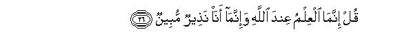 26. Qul innama alAAilmu AAinda Allahi wa-innama ana natheerun mubeenun