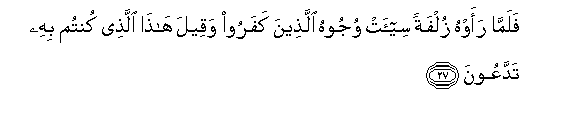 27. Falamma raawhu zulfatan see-at wujoohu allatheena kafaroo waqeela hatha allathee kuntum bihi taddaAAoona