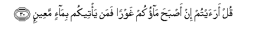 30. Qul araaytum in asbaha maokum ghawran faman ya/teekum bima-in maAAeenin