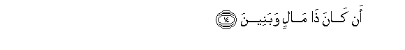 14. Because he possesses wealth and (numerous) sons.